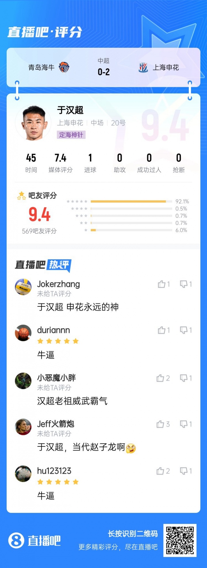 3、于汉超(上海申花)
