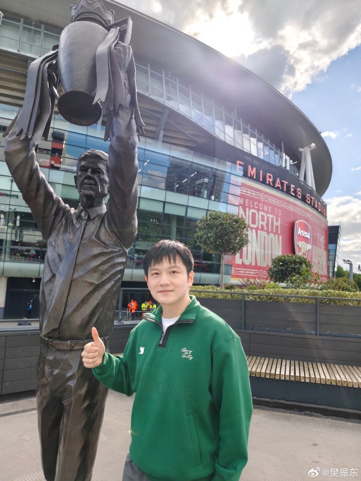 09月22日讯 昨晚英超第5轮焦点战,阿森纳主场作战 1-1战平曼城。目前在德国俱乐部萨尔布吕肯台球队效力的樊振东现场观看了这场赛事 ,并在社媒中分享了观赛感受。