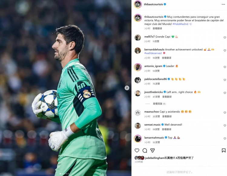 本场赛事 库尔图瓦送出助功 ,还戴上了领队 袖标国米今天新闻,苏超直播赛后他也在社媒晒照写道:“我们用出色表现赢得了一场出色 的获胜 。能够佩戴世界上最好俱乐部的领队 袖标,感到非常激动。”