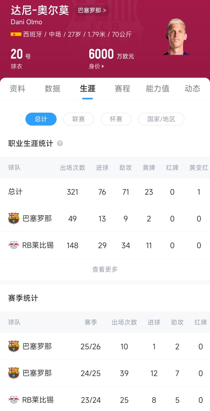 本赛季奥尔莫代表巴萨出战10场赛事 ,仅贡献1粒得分 和2次助功 ,苏超今日直播在线观看和上赛季的出色竞技状态 判若两人。