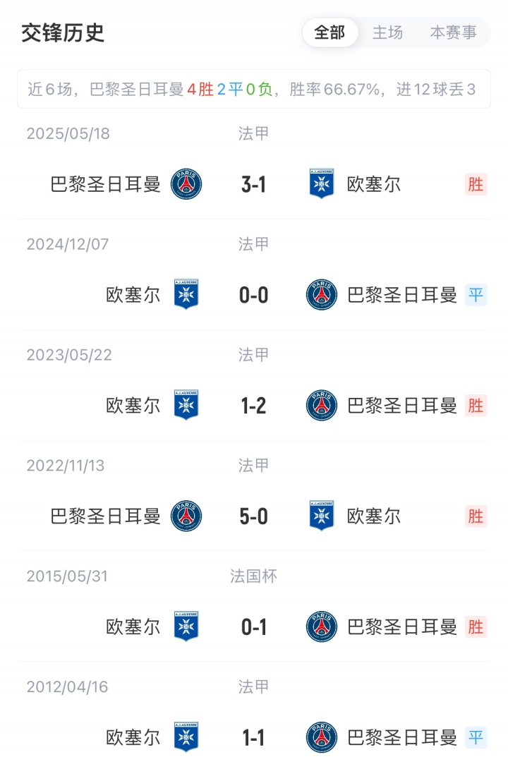 积分榜方面,jrs低调看球免费高清直播巴黎4胜1负积12分,上轮0-1落败马赛;欧塞尔2胜3负积6分,上轮1-0战胜图卢兹。巴黎历史对阵欧塞尔已连续7场不败(5胜2平)。
