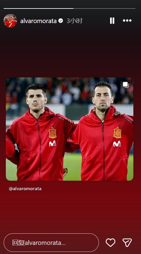 至于莫拉塔,他则晒出了两人在西班牙国家队的出场照,这不仅让人回忆起西班牙国家队的黄金时代。