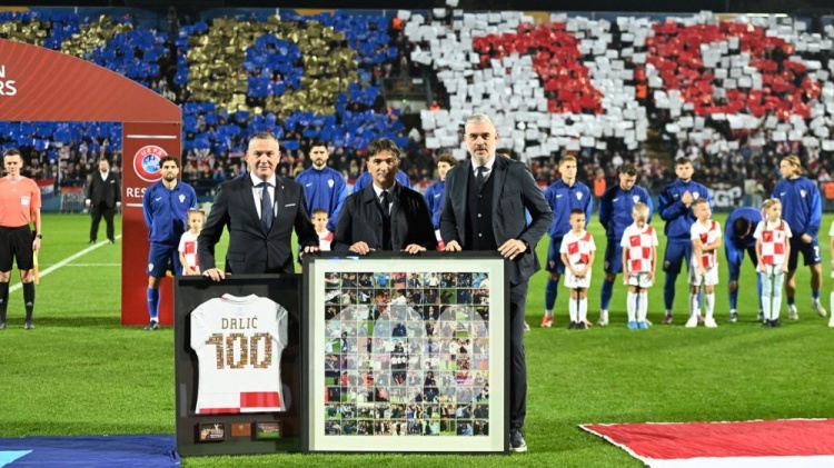克罗地亚0-0战平捷克的上场赛事 ,达利奇达成执教克罗地亚100场里程碑,雨燕360体育直播免费对阵直布罗陀赛前他获赠纪念运动活动 服 和相框。