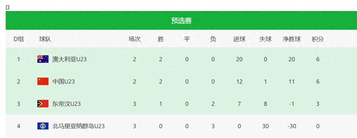 U23亚洲杯最先结束所有赛事 的两支球队出炉了,就是国足所在的D组的两支球队——东帝汶队与北马里亚纳群岛队,两队在前两场赛事 都是输球结束的,所以他们已经提前无缘U23亚洲杯总决赛 圈的赛事 ,这场赛事 成为了荣誉之战,最终实力更强的东帝汶队6-0击败北马里亚纳群岛队v站足球,收获了本次赛事 唯一的一场获胜 。